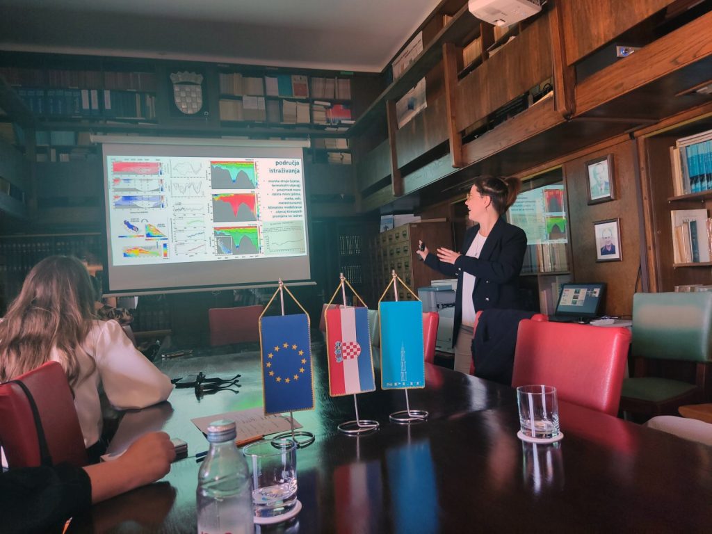 Prvo predavanje održala je dr.sc. Sanja Matić Skoko na temu „Povijest Instituta za oceanografiju i ribarstvo“. Na tom uvodnom predavanju istaknuto je da je Institut osnovan 1930. godine kao prva nacionalna znanstveno-istraživačka institucija koja se bavi morem. Od samog utemeljenja, znanstvena djelatnost Instituta je izrazito multidisciplinarna te pokriva područja biološke, kemijske i fizičke oceanografije, sedimentologije, ribarstvene biologije i marikulture. Važno je naglasiti da danas Institut posjeduje i dva istraživačka broda (Bios i Navicula) te više manjih brodica koja služe za stalni monitoring.